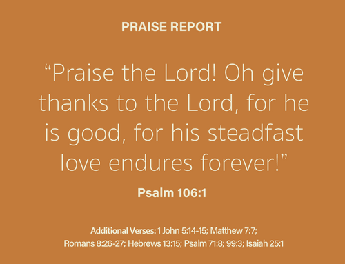 Prayer is powerful and effective. Let us pray for you and celebrate God’s answer to your prayer request. Our mission is for our church to be a house of prayer. We have a team of loving members who will join in intercessory prayer for you or those you ask us to pray for. The church staff and our prayer team are available to support you during your prayer journey.